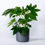 Met de fatsia japonica, beter bekend als de vingerplant, haal je een opvallende verschijning je huis in! De grote handvormige bladeren zijn een decoratief aspect van deze kamerplant en zorgen voor een exotische uitstraling. In oktober en november kan de kamerplant bloeien met ronde, witte bloemen. De bloemen verschijnen als witte bollen. De bladeren van de vingerplant kunnen wel 40 cm groot worden en zijn donkergroen en glanzend van kleur.