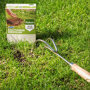 - Hark de bovenlaag van de grond los en verdeel er een dun laagje Pokon Gazongrond over. Zorg voor een gelijkmatige verdeling van de grond over de plek die je wil behandelen.